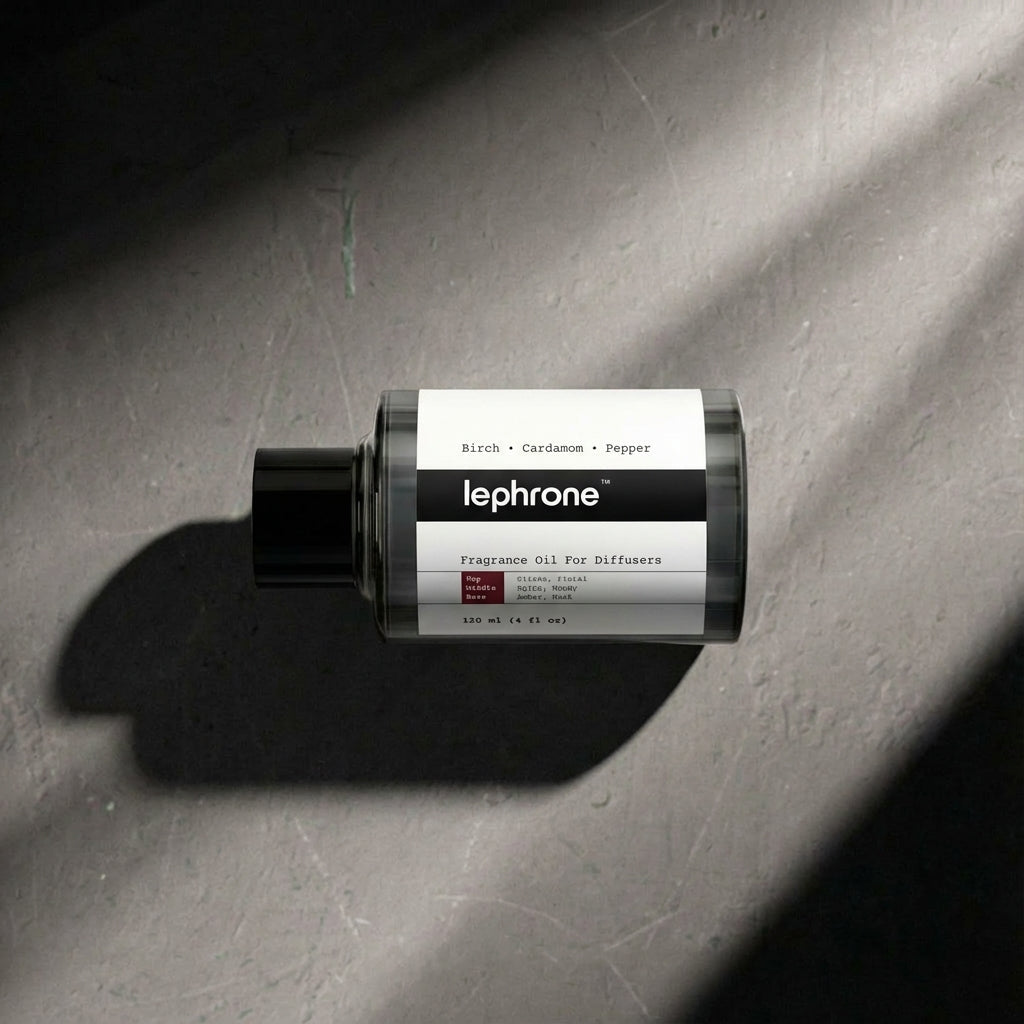The journey begins with zesty citrus, setting a vibrant tone. At its core, aromatic spice pulses with life. The experience concludes with the warmth of golden amber. Lephrone oils are intended only for waterless diffusers.
