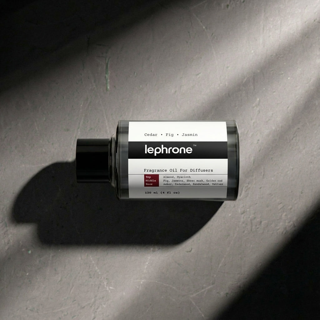 The journey begins with Almond, setting a delicate tone. A timeless core of Fig emerges beautifully. Resting on warm amber, the scent feels complete. Lephrone oils are intended only for waterless diffusers.