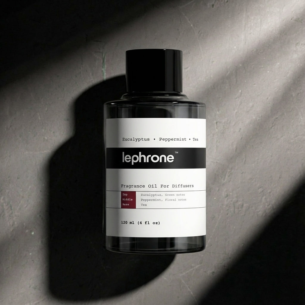The journey begins with camphoraceous eucalyptus, setting a modern tone. The scent is enriched by the presence of cool mint. A foundation of Tea adds a refined finish. Lephrone oils are intended only for waterless diffusers.
