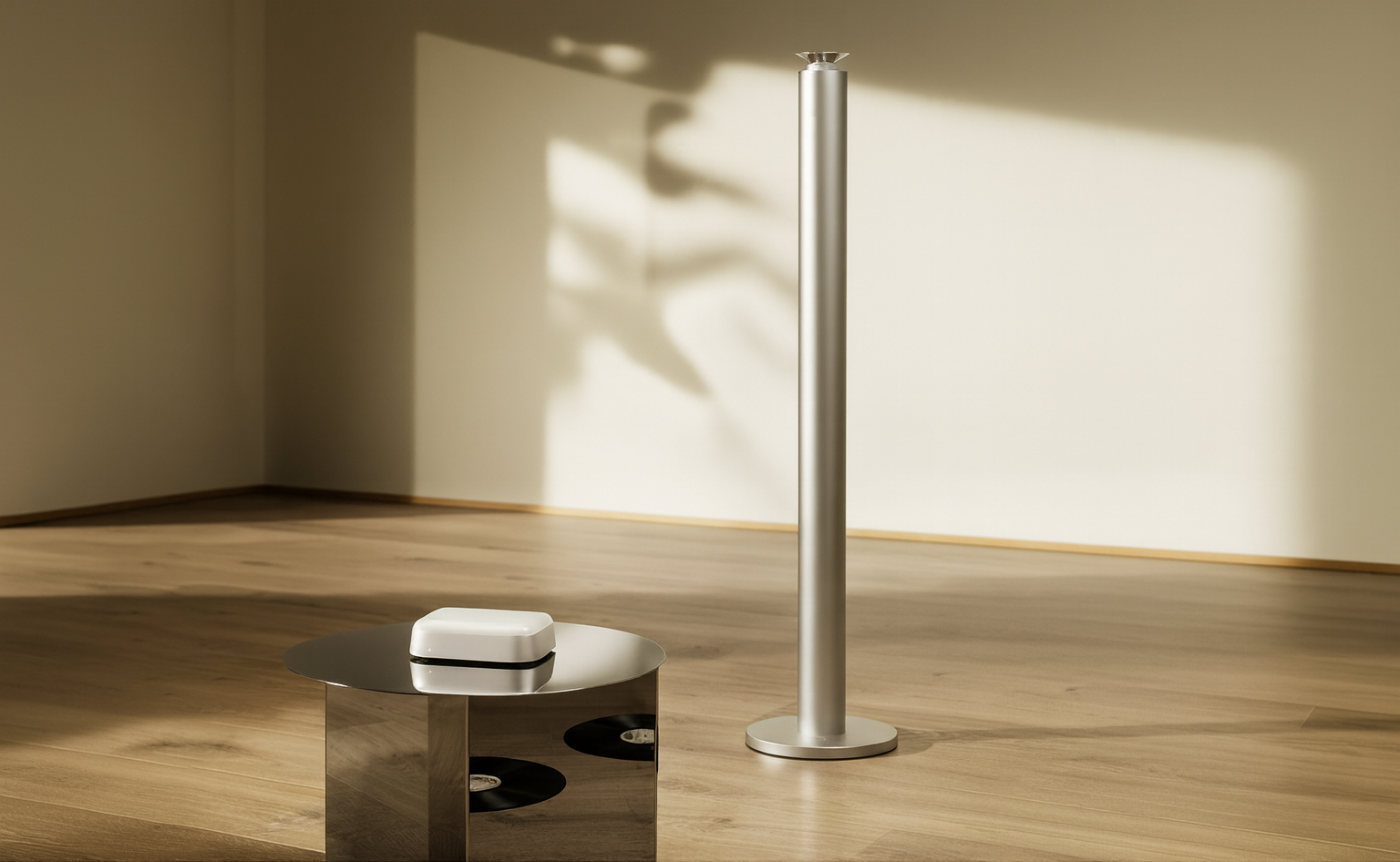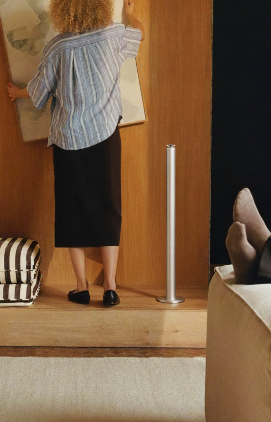 The minimalist column structure ensures stability while maintaining a refined, sculptural presence. Finished with a matte anodized coating to resist fingerprints and preserve its elegant texture over time.
