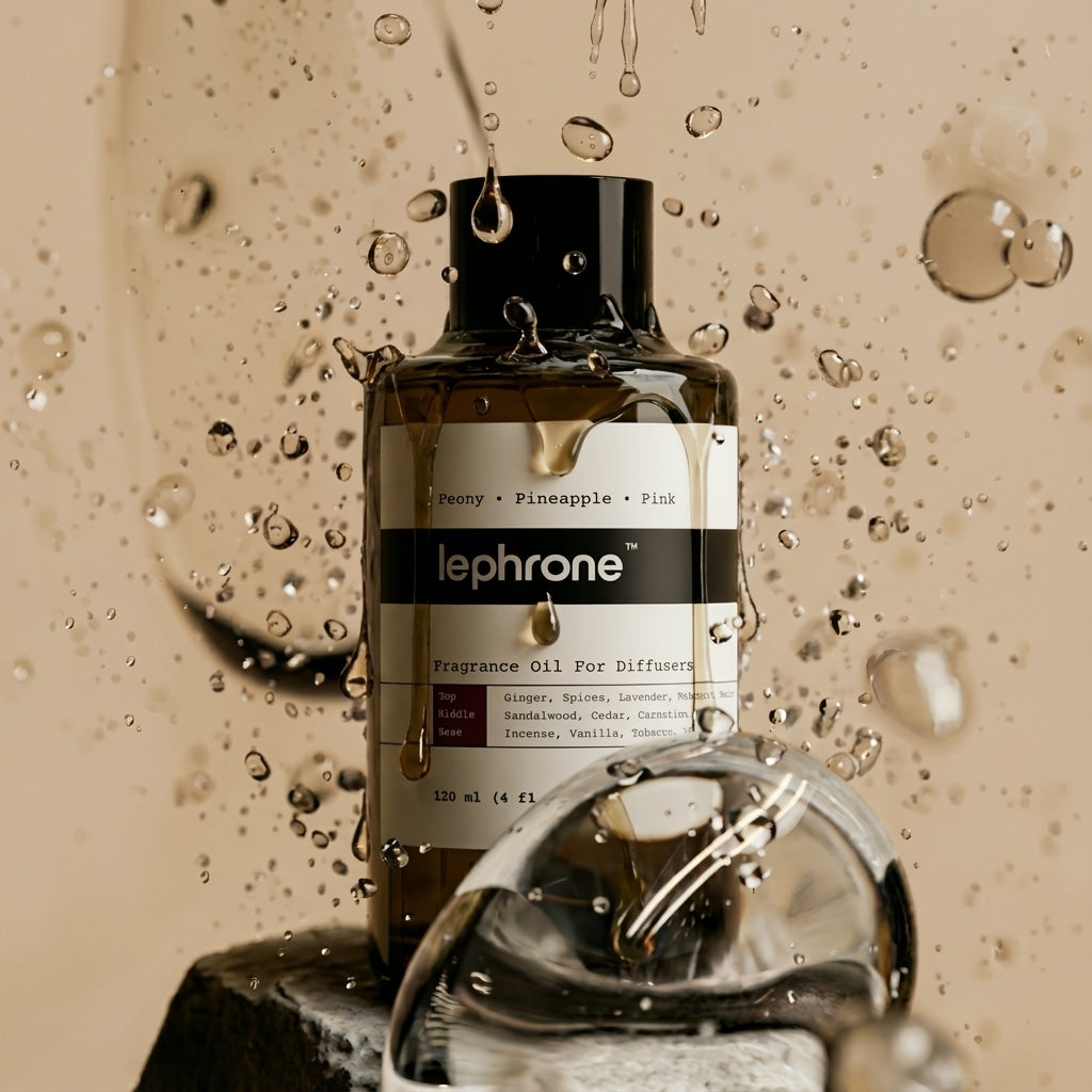 The scent unfolds with Ginger, offering a rich start. The spirit of the fragrance lies in warm sandalwood. The final notes of Incense provide a subtle closure. Lephrone oils are intended only for waterless diffusers.