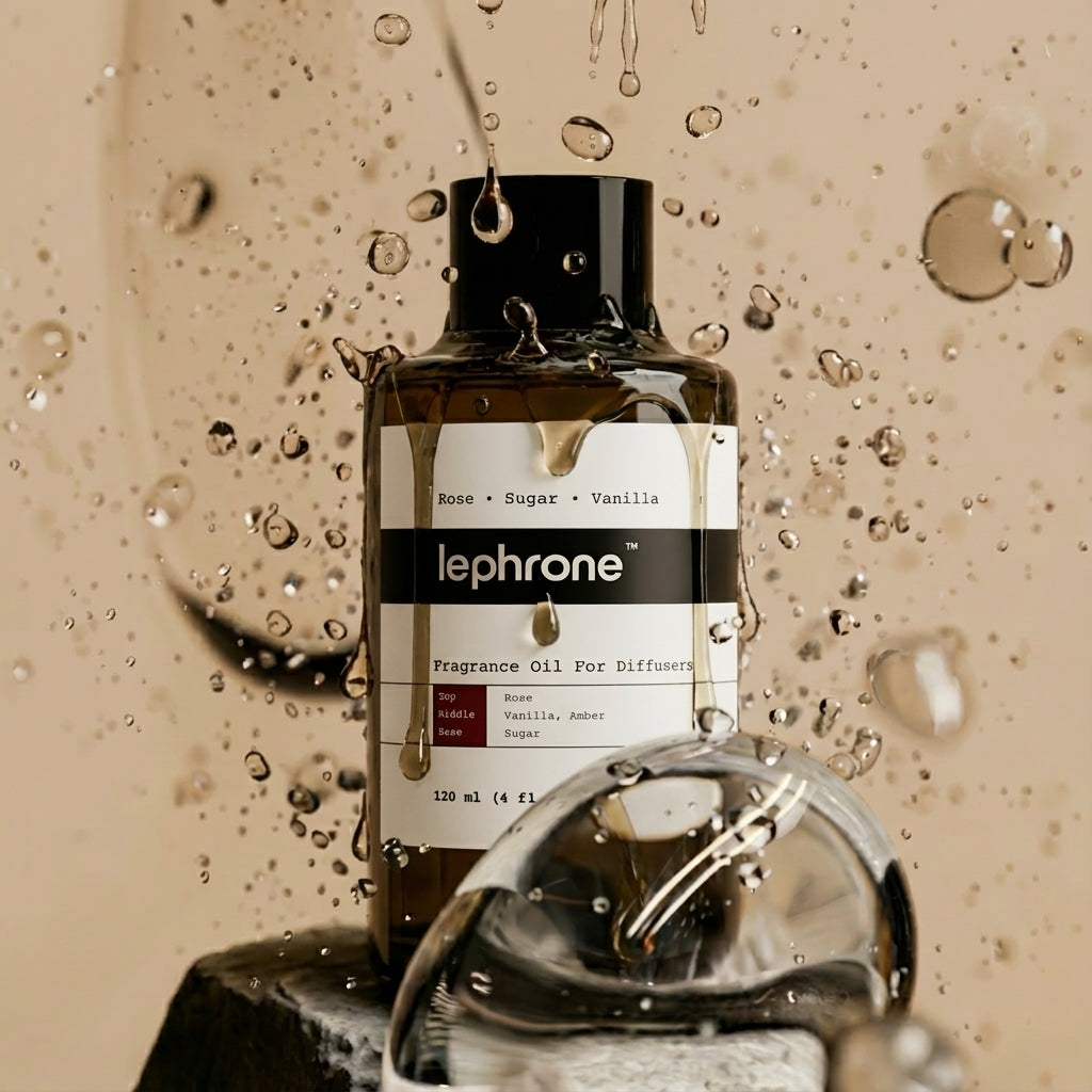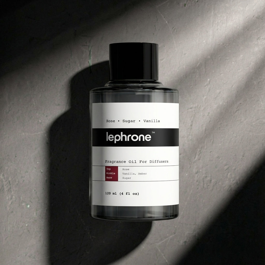 The journey begins with delicate rose, setting a modern tone. A luxurious core of gourmand vanilla emerges beautifully. The modern base of Sugar anchors the composition. Lephrone oils are intended only for waterless diffusers.